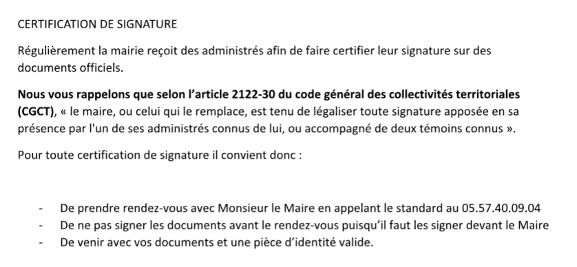 INFO + CERTIFICATION DE SIGNATURE