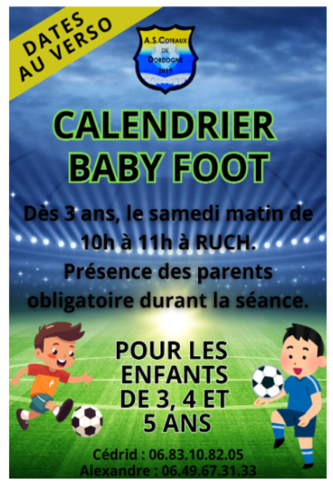 Ci-dessous le planning 2025-2026 des entrainements des équipes de l’AS Coteaux de Dordogne par catégorie.
