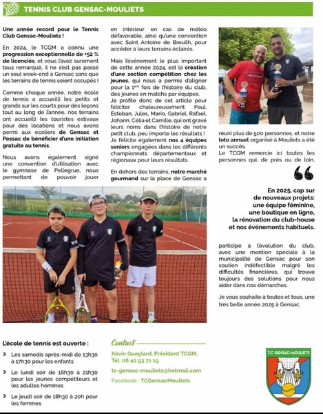Contact et dates rencontres : AS COTEAUX DE DORDOGNE