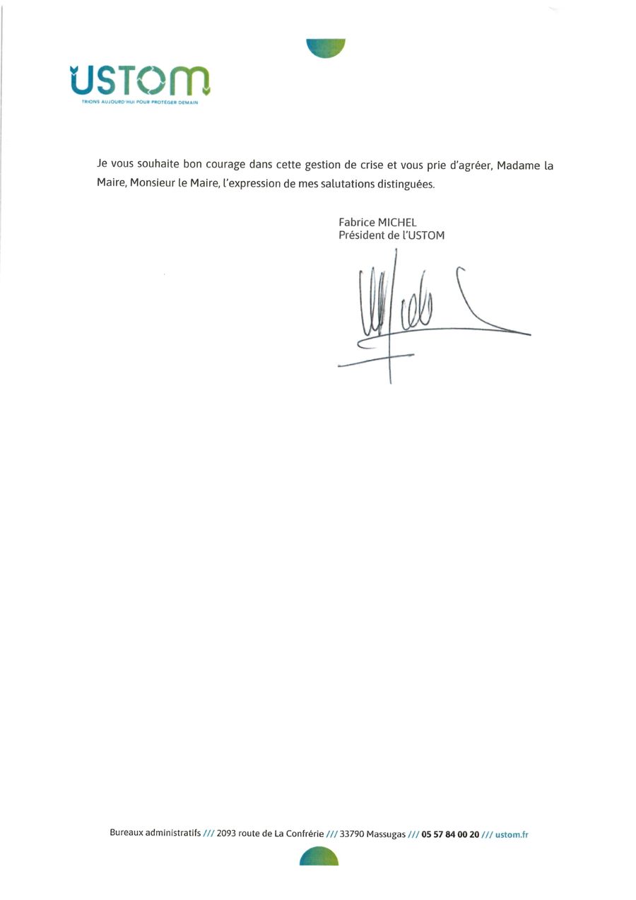 Toute l’équipe de l’USTOM reste à votre écoute du mardi au vendredi, de 9h à 12h et de 13h à 17h00 par téléphone 05 57 84 00 20